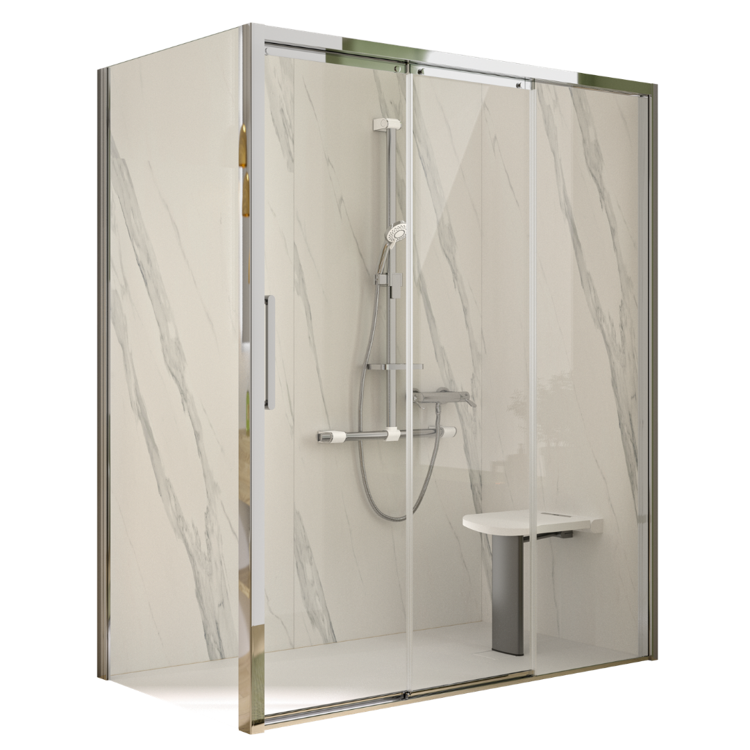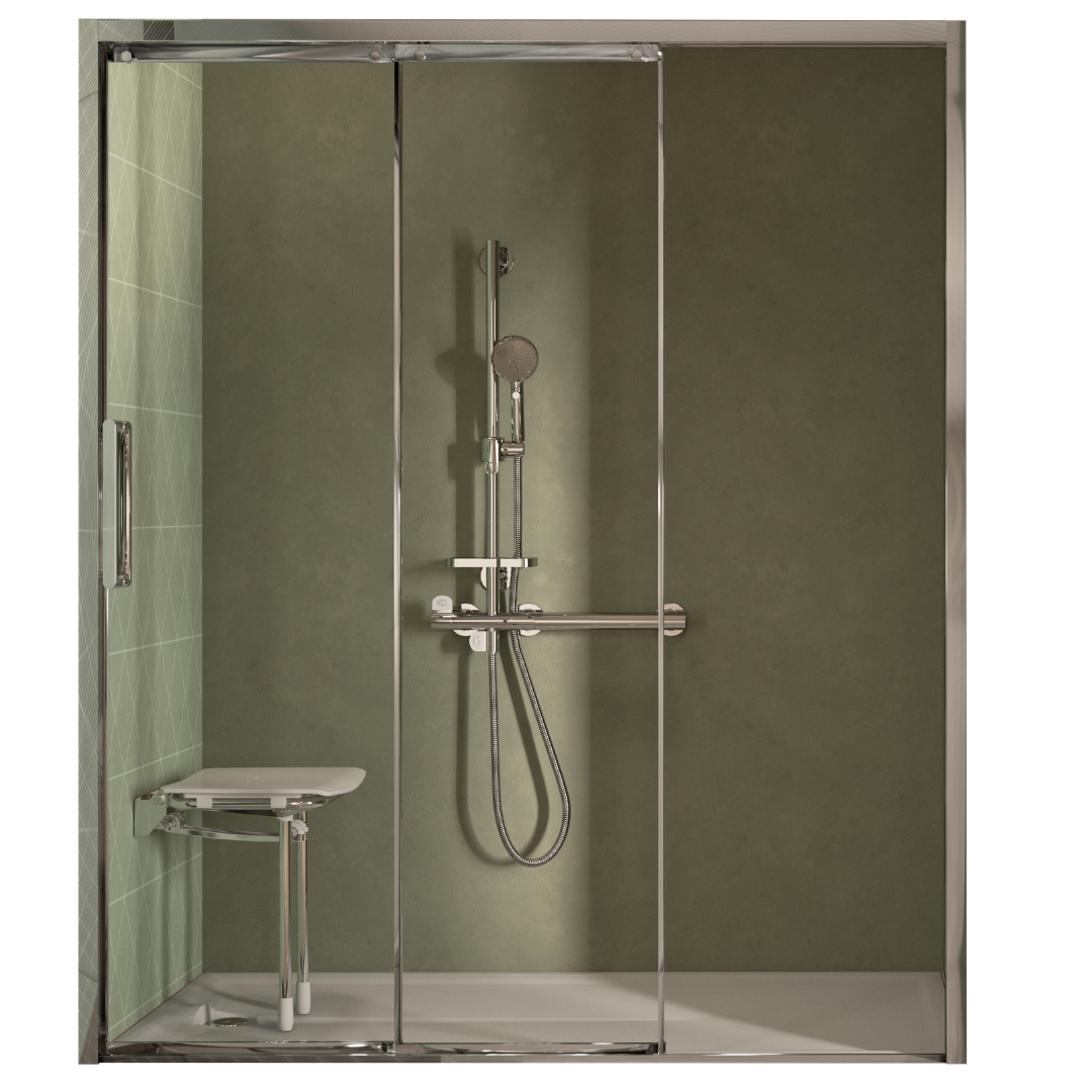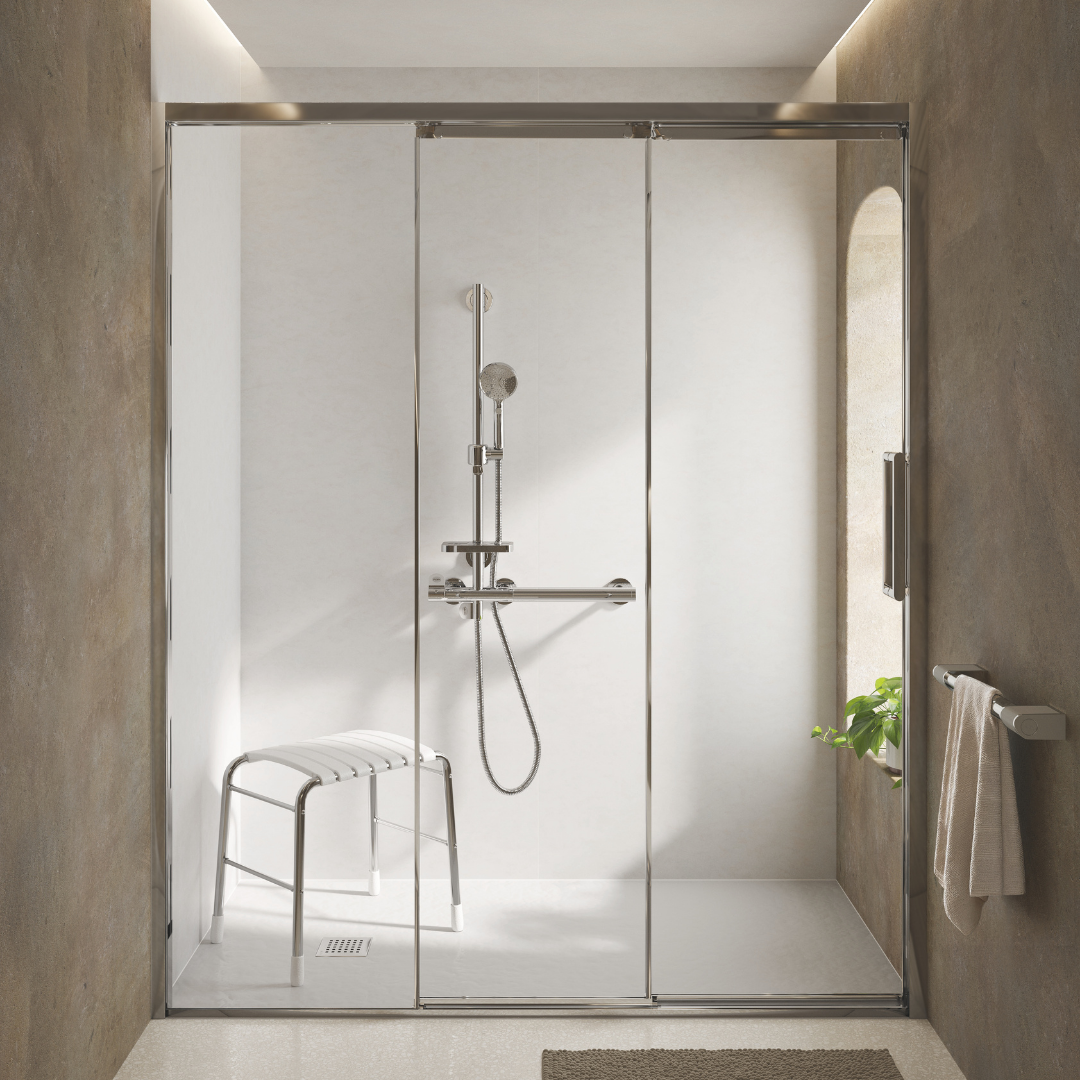 La paroi de douche coulissante Larenco Movéo allie accessibilité, confort d'usage et élégance contemporaine. Conçue pour faciliter le quotidien, elle offre une ouverture assistée avec un passage utile compris entre 600 et 640 mm, idéale pour sécuriser les déplacements et simplifier l'accès à la douche.