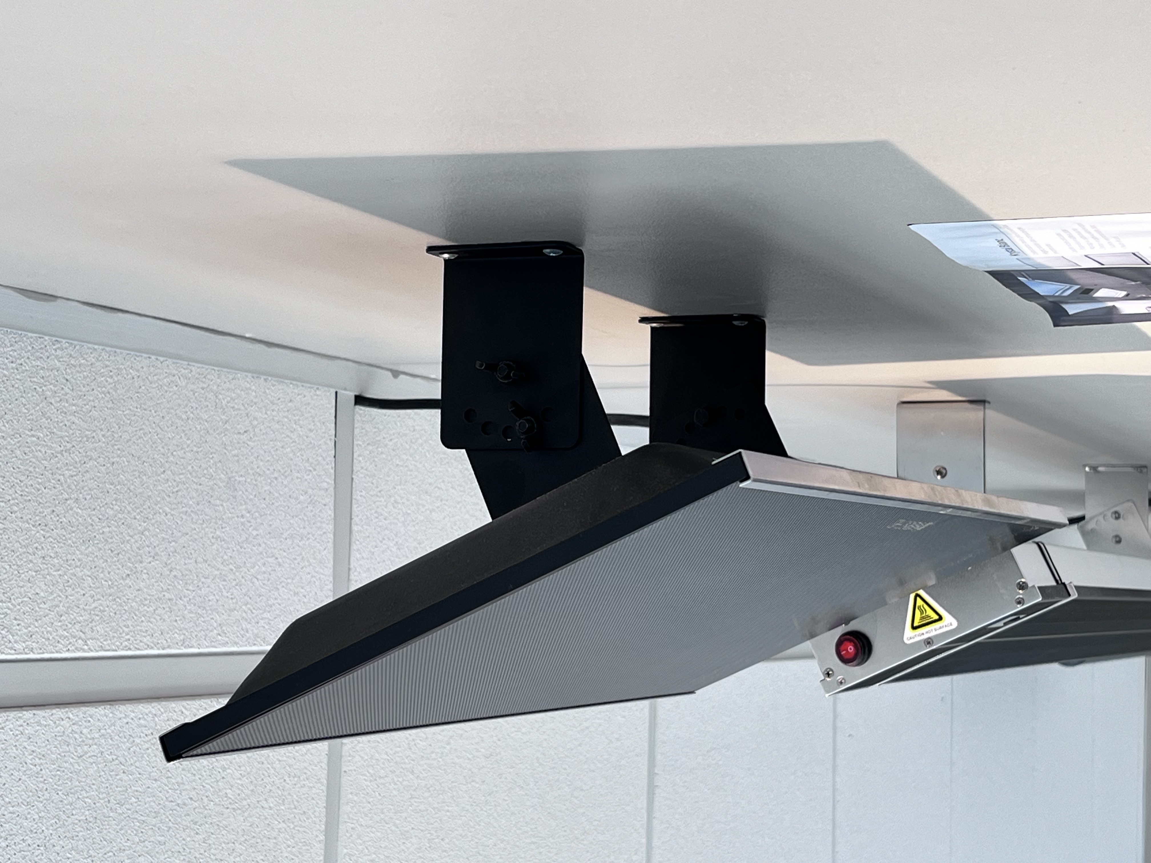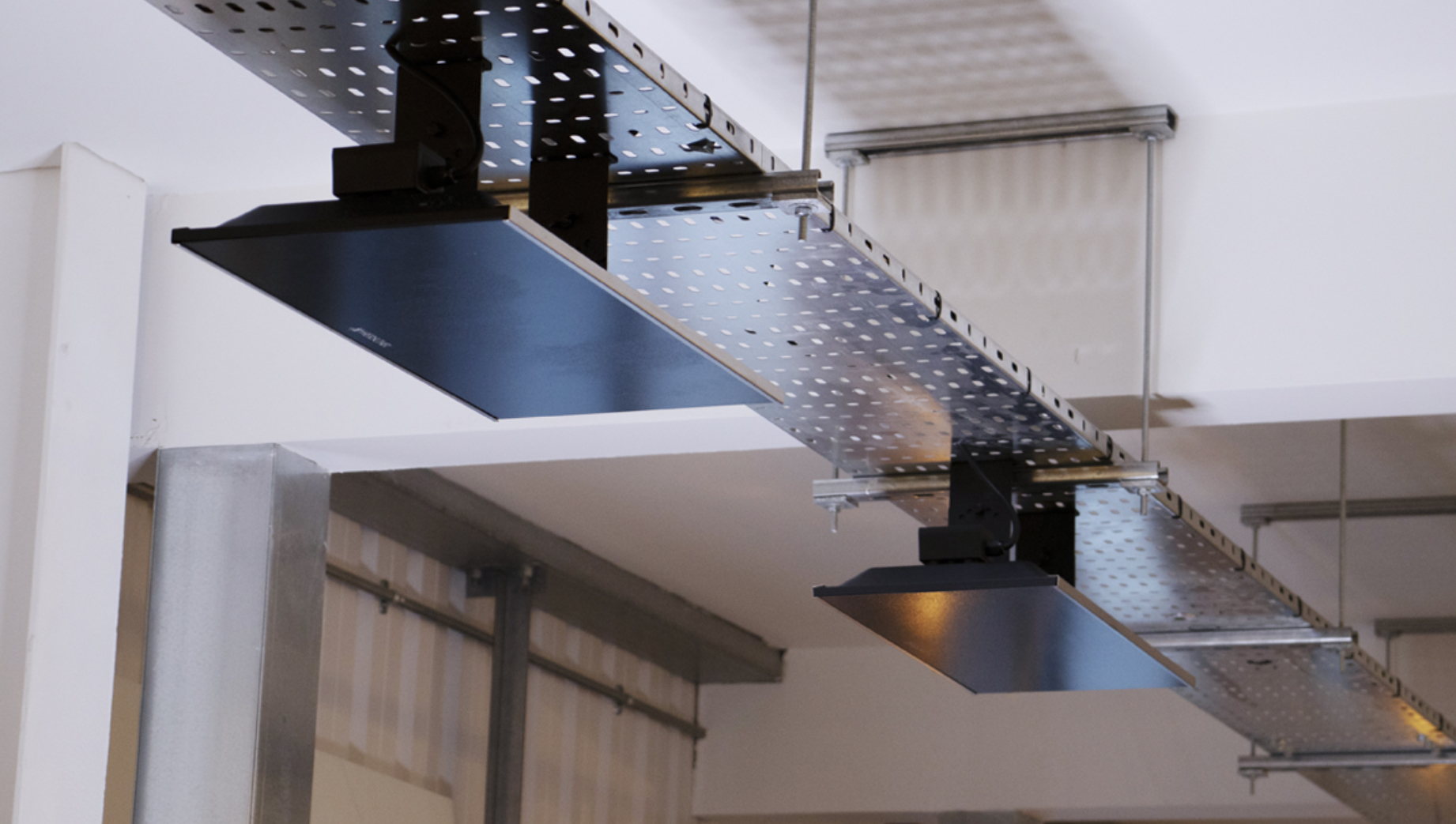 Fixation Murale et Plafond (Fournie) : Le panneau est livré de série avec des pattes réglables et orientables. Ces supports permettent une pose rapide et flexible, au mur ou en surface de plafond.