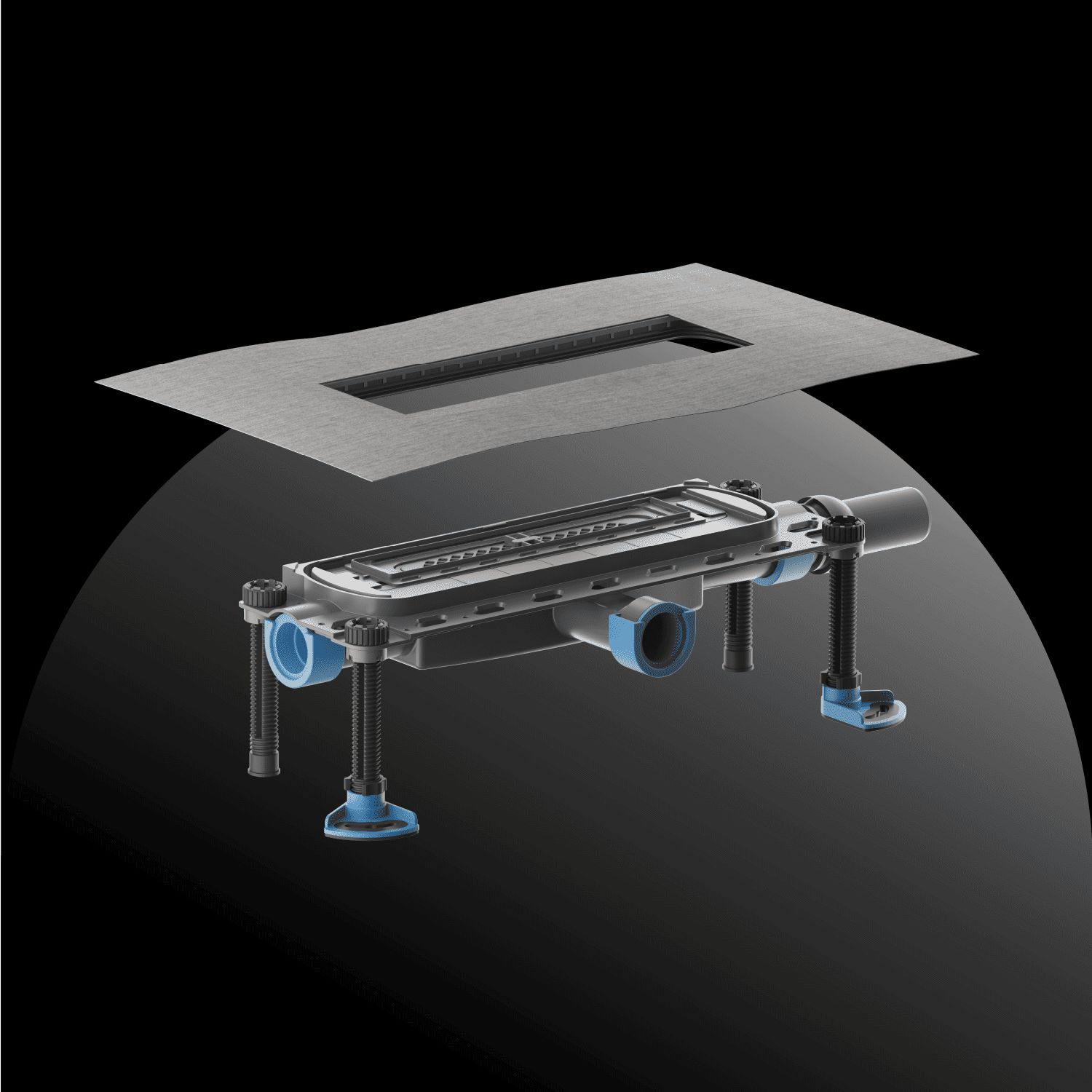 DallFlex 2.0 conserve les avantages de la première génération de systèmes : La collerette d’étanchéité se clipse sur le corps d’avaloir et une fois intégrée - au joint composite - le système atteste d’une étanchéité pérenne (norme DIN 18534). Le tuyau d’écoulement - positionnable sans outils sur trois côtés et doté d’une rotule - assure un raccordement sans tension à la conduite d’évacuation.