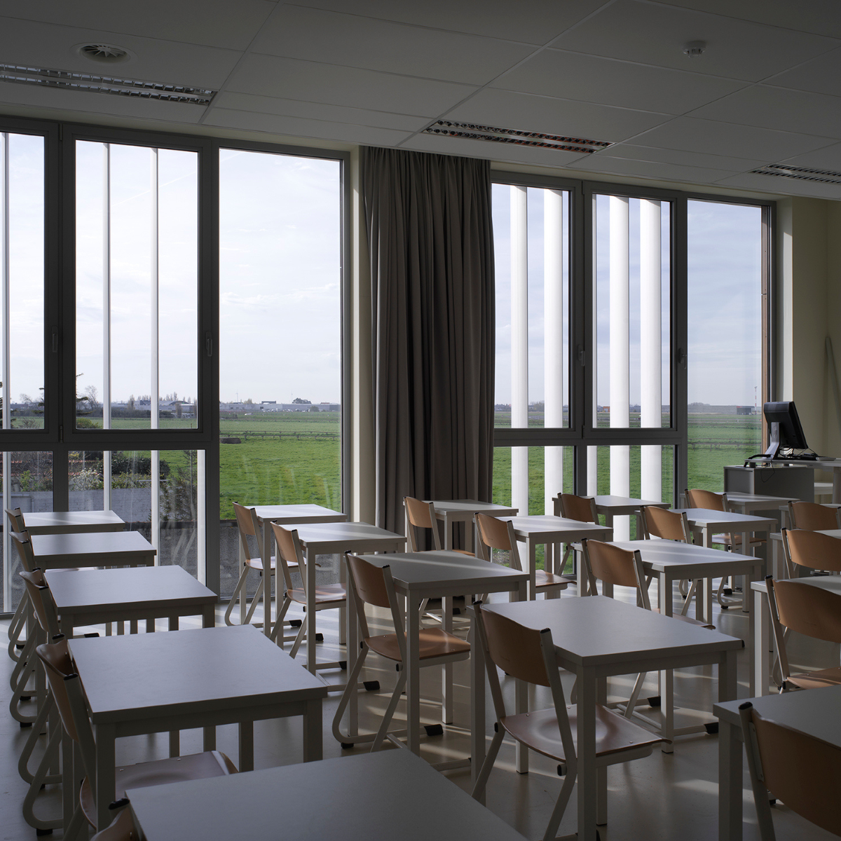 Ce système de brise-soleil est proposé aux lames fixes ou motorisées. Elles se fixent sur l'ossature porteuse sur place (horizontale ou verticale). Dans ce même ordre d'idées, un nombre important d'angles d'inclinaison est possible. Cela permet au système un ombrage optimal, quelle que soit la surface vitrée et quelle que soit la position du soleil. Les lames brise-soleil DucoSun Ellips permettent une grande liberté de création aux architectes.