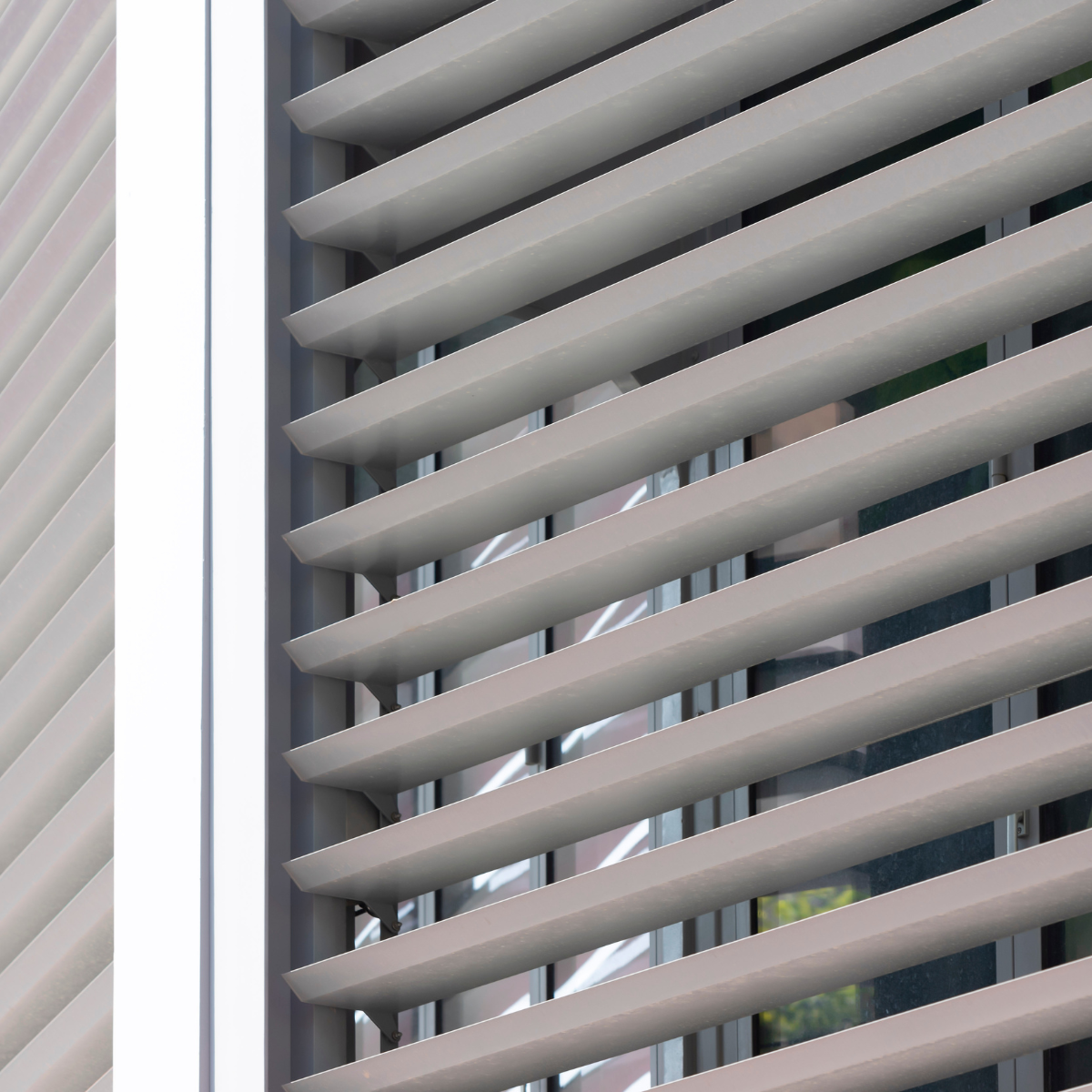 Les lames brise-soleil DucoSun Linear sont en forme de parallélogramme. Fixes ou orientables, toutes les dispositions et toutes les méthodes de pose sont permises. Très utilisées en brise-soleil orientable pour leur très bonne occultation, ou en brise-soleil projection (auvent ou casquette) pour les grands porte-à-faux.