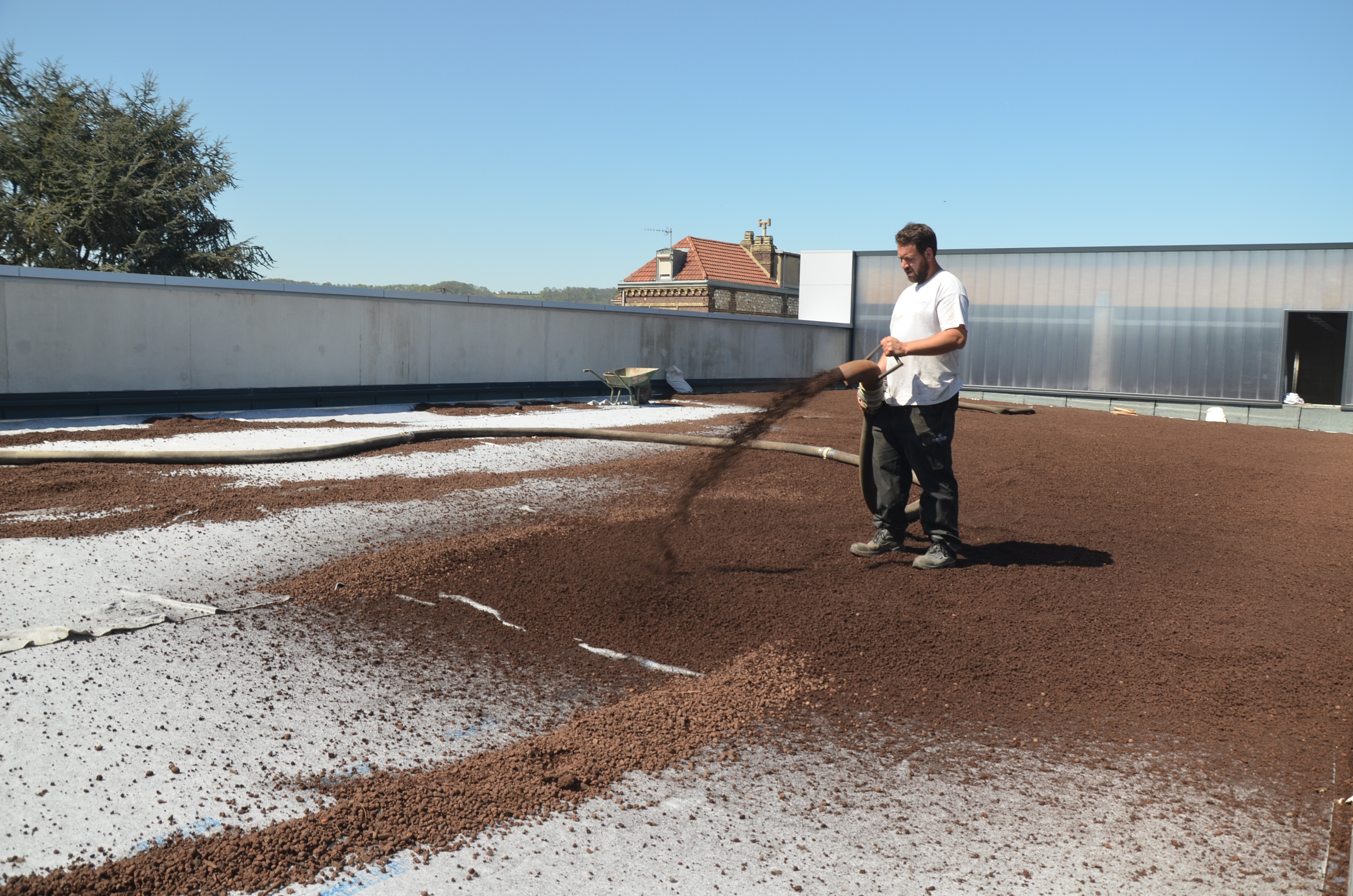 Ecovegetal propose une gamme de substrats à souffler directement en toiture végétale. Livraison en camions silos. Substrats pour toitures extensives, semi-intensives et intensives. Soufflage jusqu'à R+7 des bâtiments.