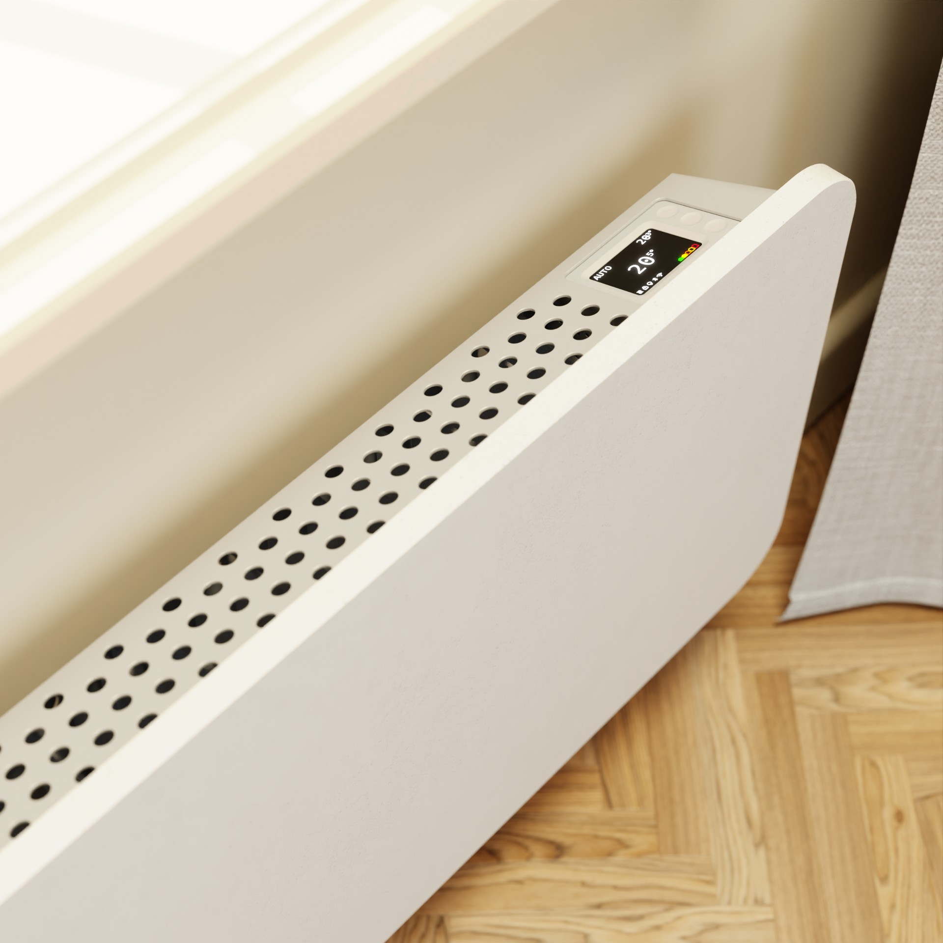 Le Fogo Pedra est un radiateur plinthe à inertie conçu pour s'intégrer discrètement sous les fenêtres grâce à sa hauteur réduite de 30 cm. Il combine design élégant et performance thermique pour un chauffage efficace.