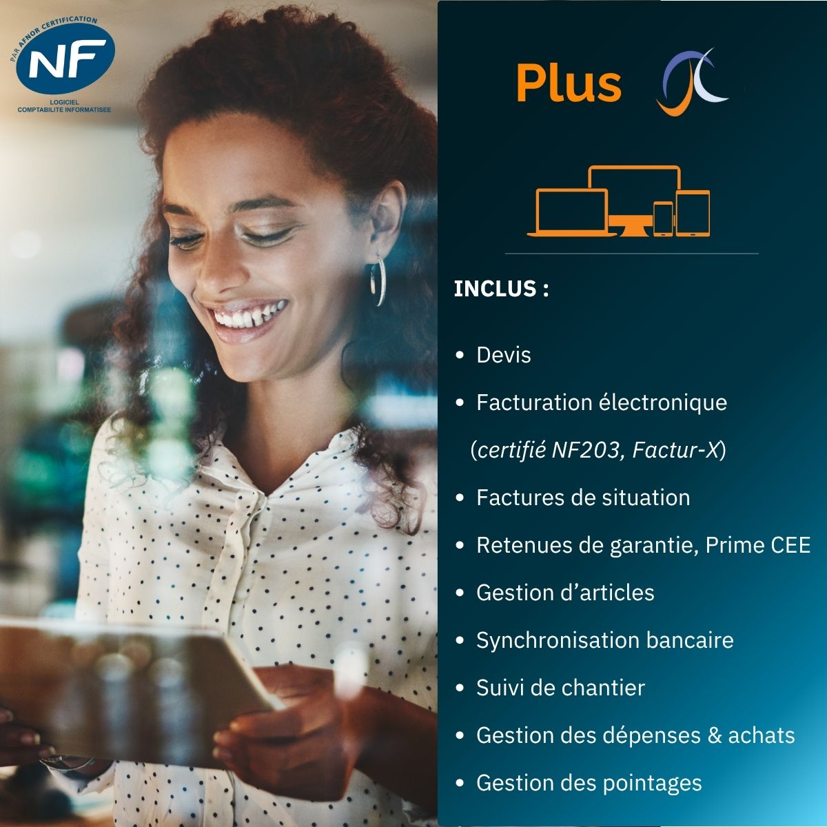 Le Pack Plus JLogiciels s'adresse aux entreprises qui souhaitent aller au-delà de la facturation et intégrer le suivi opérationnel des chantiers.