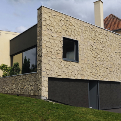Ces panneaux sont des revêtements muraux moulés à partir de vrais murs et se déclinent en un choix important de types, de couleurs et de textures. Constitués de résine de polyester et de fibres de verre, ils sont résistants aux UV, aux chocs, à l'abrasion et à l'humidité. Ils peuvent ainsi être installés en intérieur comme en extérieur. Fournis avec leur kit de jointoiement. Classement M1 sur demande.