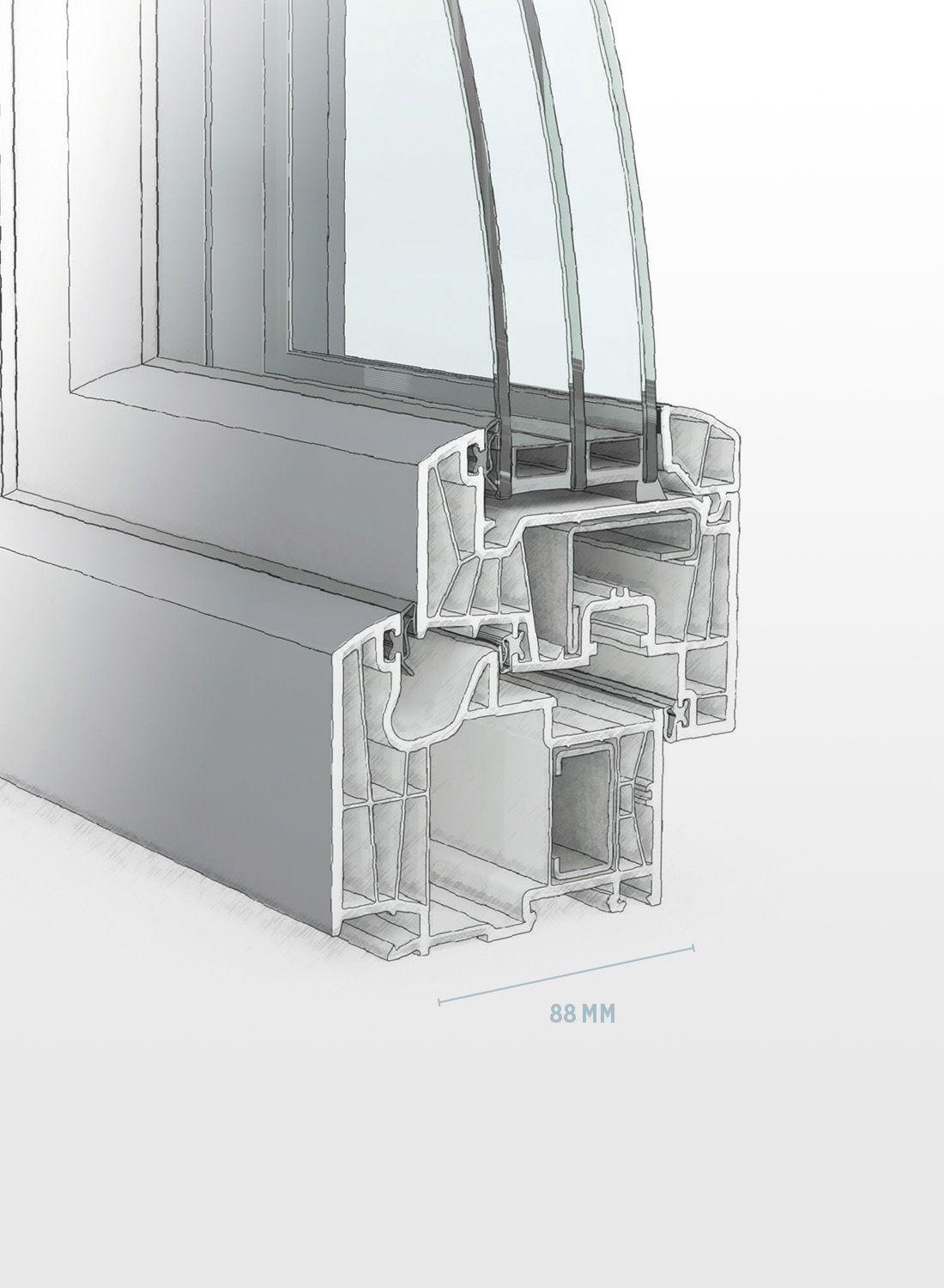 L'association du profil 88 mm et du triple joint contribue à limiter les déperditions de chaleur et à maintenir une température intérieure stable.