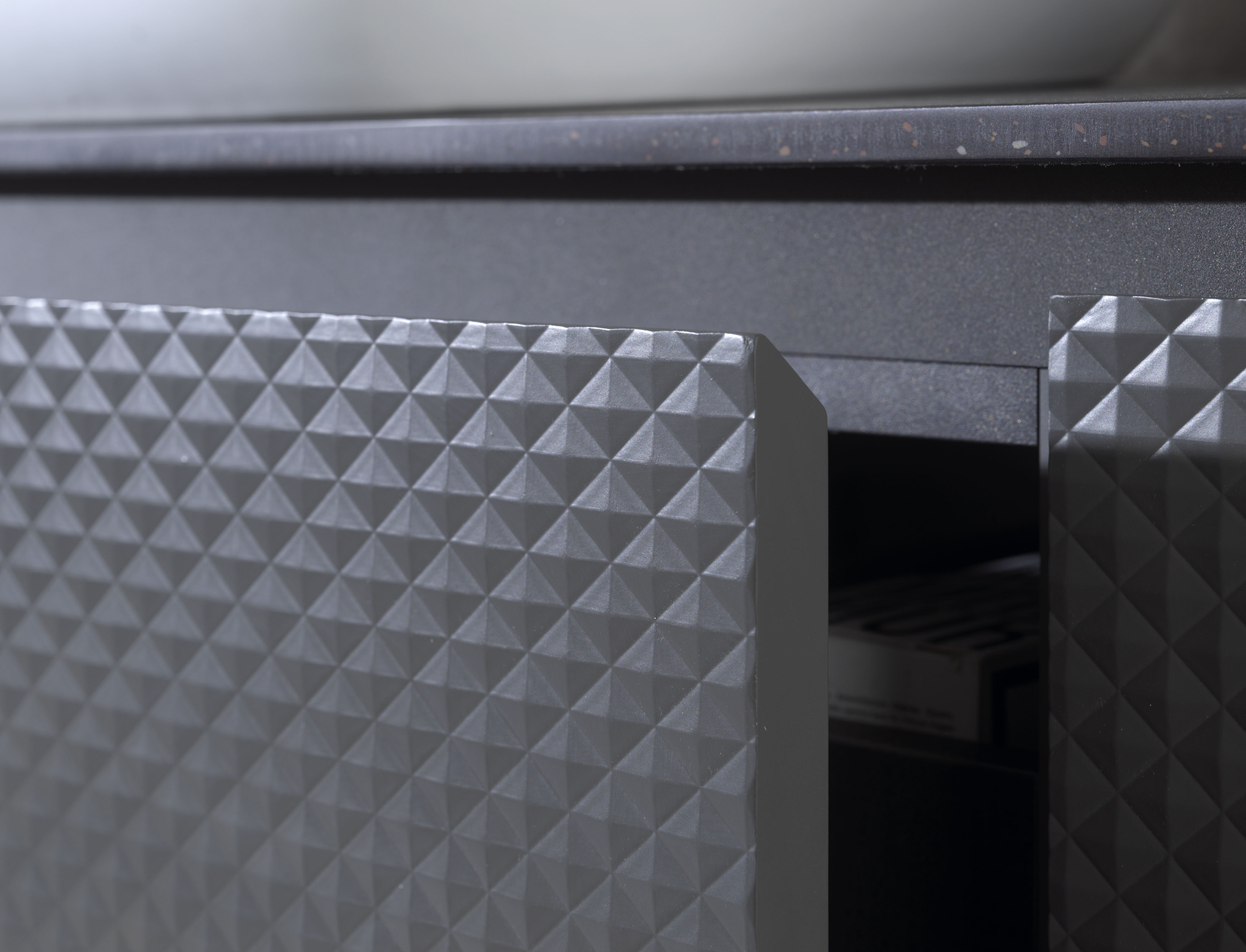 Nouvelle série de meubles de salle de bains modulaires de Gamadecor, marque du Groupe Porcelanosa. Son design s'appuie sur une esthétique contemporaine où le fraisage géométrique en forme de prisme, de cannelure ou de pyramide n'est pas seulement un détail ornemental, mais l'élément principal qui confère du relief et une personnalité unique à chaque façade. La modularité de la collection permet de s'adapter à toutes les contraintes d'espace, tout en proposant une palette de 24 finitions en laqué mat.