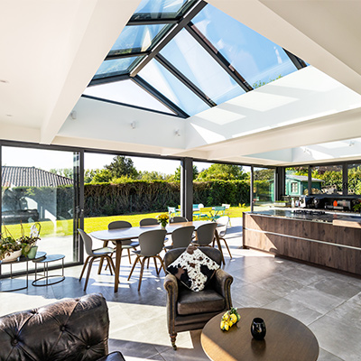 Wallis® est une toiture de véranda aluminium design, avec isolation thermique, qui autorise de nombreuses architectures : toiture plate, de forme victorienne, classique ou d'allure atelier d'artiste...