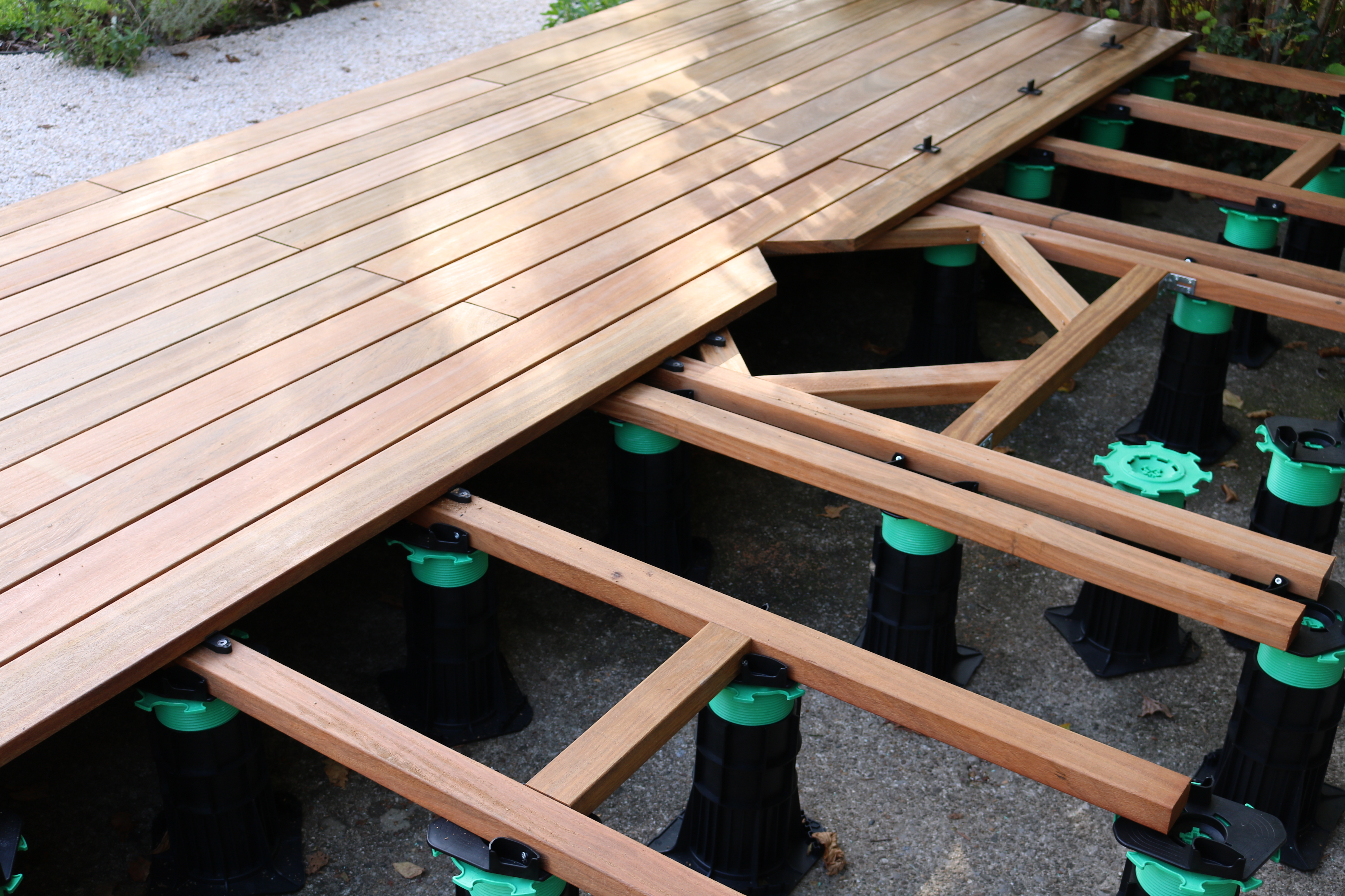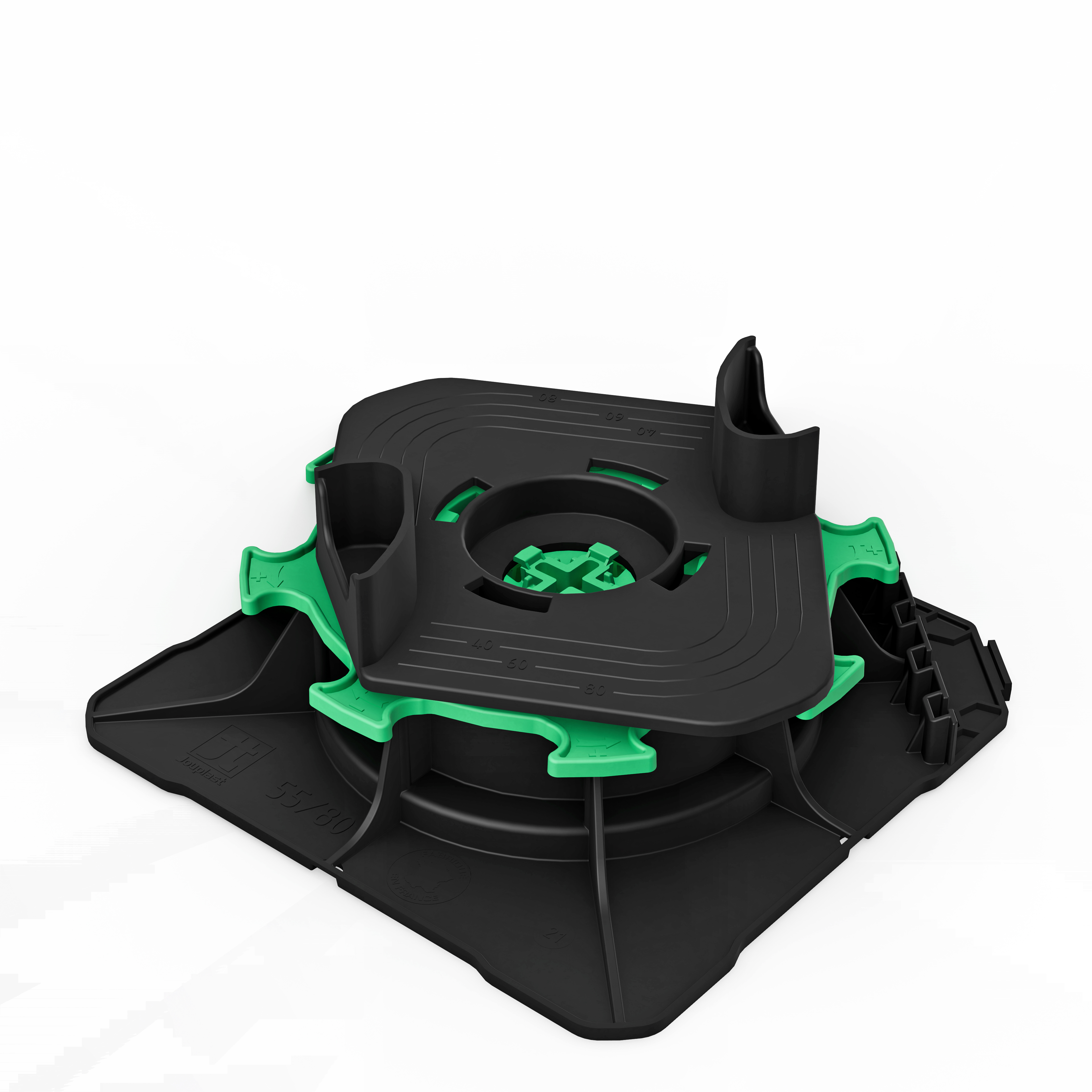 Support breveté autonivelant, réglable en hauteur, pour la création de terrasses en bois ou composite, destinées à un usage piéton. La nouvelle gamme EASIO vous permet de construire une terrasse sur plots en toute simplicité grâce à ces nombreux avantages. Ce plot monobloc se compose tout d'abord d'un flasque carrée, imaginée pour faciliter la pose en angle. Sa tête autonivelante en forme de losange permet quant à elle de : compenser ou créer une pente jusqu'à 5%, faire un double lambourdage avec une seule rangée de plots mais aussi de maintenir un étrésillon avant de le fixer. Les deux languettes présentes sur la tête vous permettent également de centrer aisément la lambourde sur votre plot. La hauteur de ce plot est ajustable manuellement ou avec l'embout de vissage EASIO/ CLEMAN. Utilisable avec la finition latérale EASIO pour bloquer la fonction autonivelante du plot.