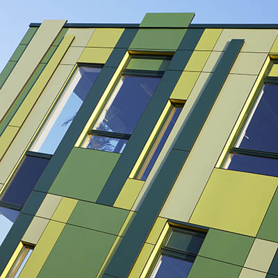 La collection Trespa® Meteon® Uni Colours rassemble 69 décors aux teintes profondes et hautement résistantes, déclinées en deux finitions : Satin et Rock, pour concevoir des décors de façades innovants autant qu'intemporels.