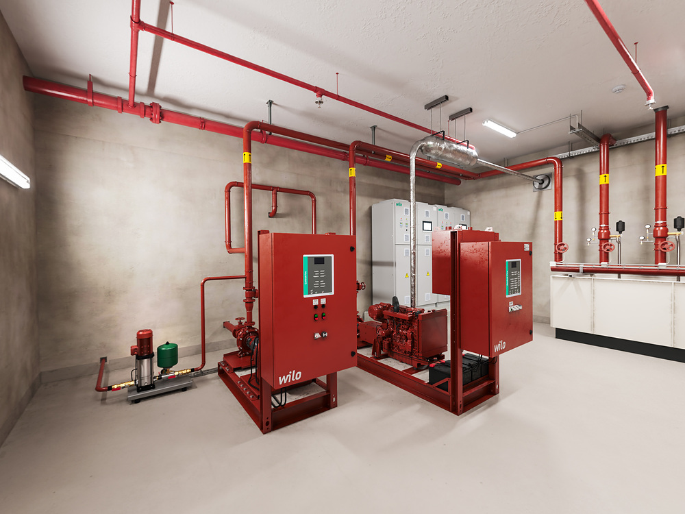 Wilo-FireSet-F est un système de surpression configurable à intégrer dans des systèmes de sprinklers pour la lutte automatique contre les incendies. Ses composants modulaires apportent à l'installation une flexibilité maximale lors de la planification d'installations de protection contre l'incendie. La configuration spécifique à l'utilisation est effectuée dans le respect des normes et directives internationales et locales (NFPA 20, UL, EN 12845, Vds, CNPP et autres). Pour ce faire, des pompes Wilo fiables avec corps divisé dans l'axe ou de construction back pull-out sont utilisées.